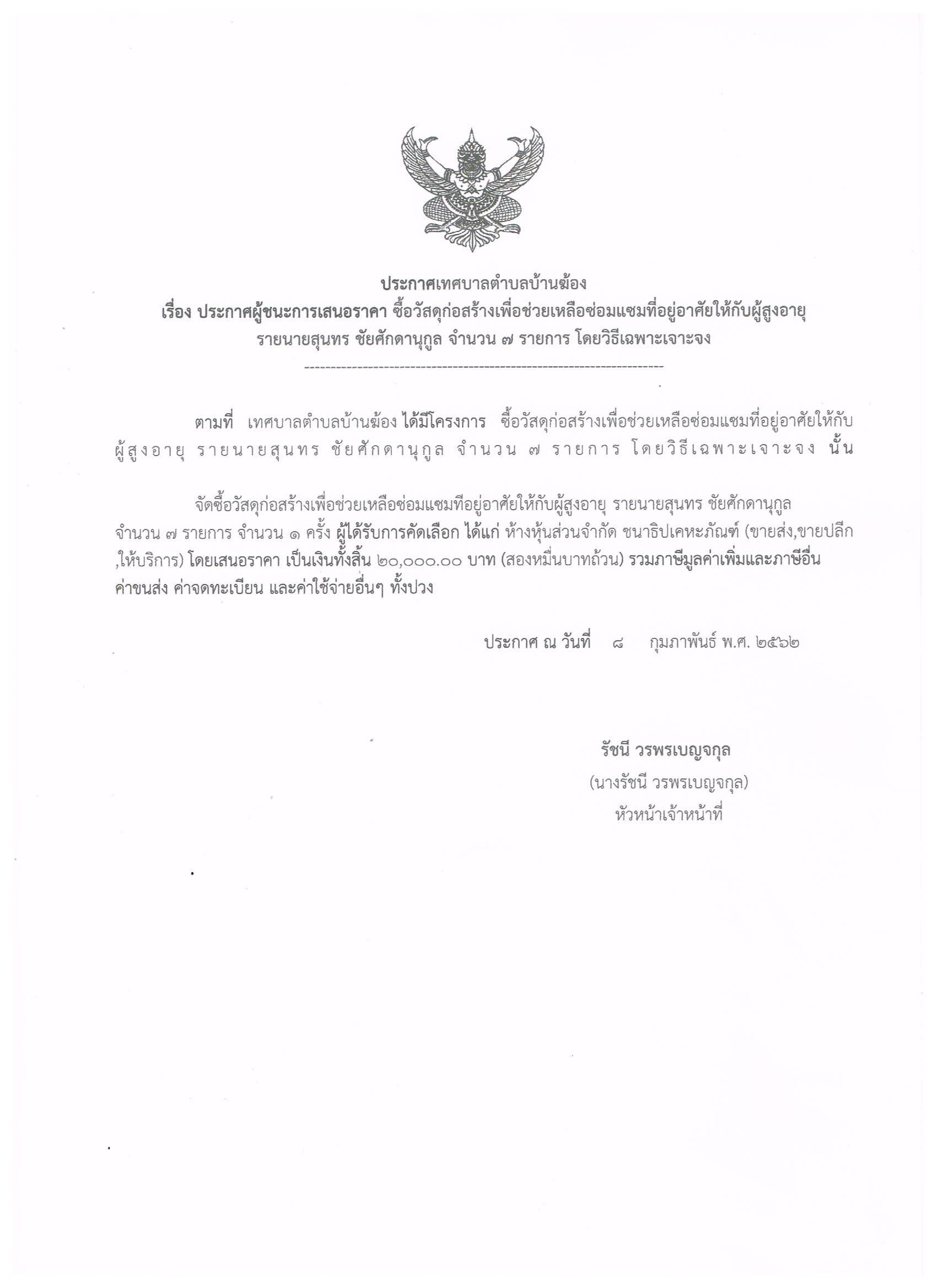 เทศบาลตำบลบ้านฆ้อง ประจำปีงบประมาณ ๒๕๖๒